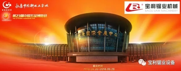 第二十三届中国五金博览会 邀 请 函 尊敬的客户, 您好! 非常感谢您长期以来对宝利锯业的支持和信任。 2018年9月26日-28日,备受业界期盼与瞩目的第二十三届中国五金博览会将在永康举行。 以专业化、品牌化、国际化为导向,我公司积极服务好海内外企业,深入交流与合作,踏实努力的提高品牌形象。 在我们不断研发投入下,我公司研发了出了更多的智能设备,希望通过这次机会能与贵公司共同探讨和交流,以便我们更加深入的合作。共同开拓和占领市场。